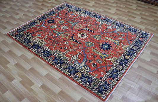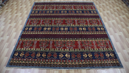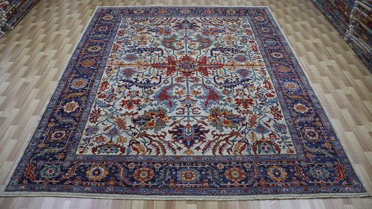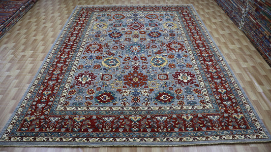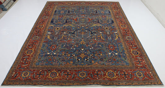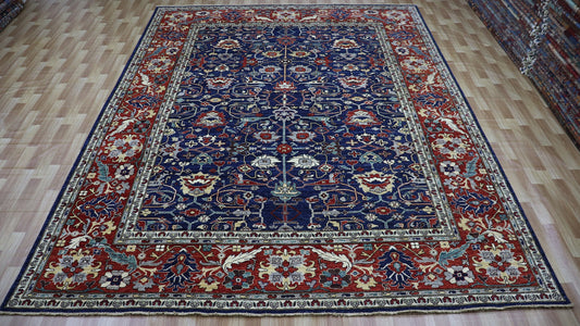 8x10 Ft Red/Blue Serapi Hand Knotted Afghan Area Rug