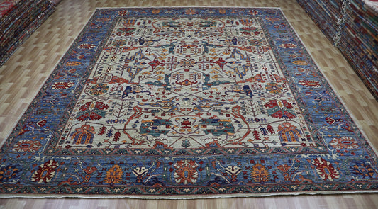 12x15 ft Persian Style Bidjar Area Rug, Beige Blue Hand Knotted Wool Traditional Carpet, Rugs For Living Room, Bedroom Rug, Dining Table Rug