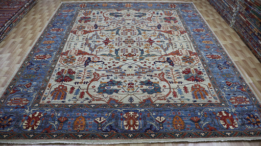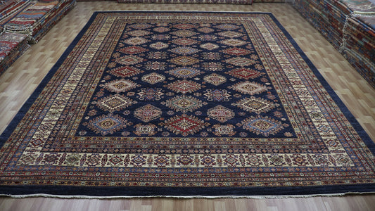 12x16 Ft Oriental Kazak Large Area Rug, Blue Afghan Hand Knotted Wool Rectangle Carpet, Rugs For Living Room, Bedroom Rug, Dining Table Rug