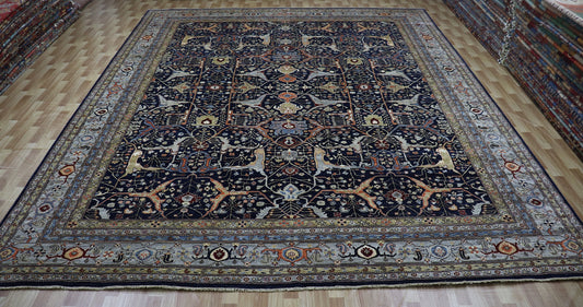 12x15 Ft Bidjar Arabesque Large Area Rug, Navy Blue Persian Style Hand Knotted Wool Traditional Carpet, Rugs For Living Room, Bedroom Rug