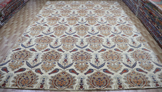 12x18 Ft Beige Turkish Large Area Rug, Afghan Hand Knotted Wool Traditional Rectangle Floral Carpet, Rugs For Living Room, Dining Table Rug