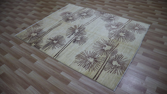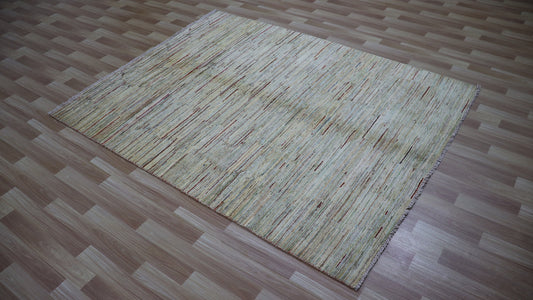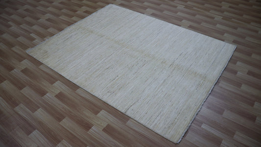 5x6 ft Modern Gabbeh Area Rug, Beige Afghan Hand Knotted Plush Wool Transitional Rectangle Carpet, Living Room Rug, Bedroom Rug, Kitchen Rug