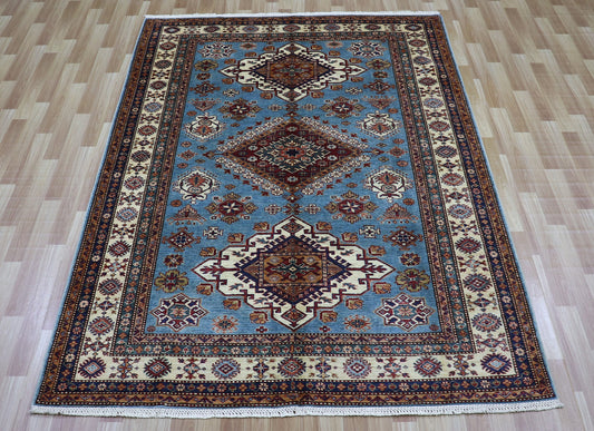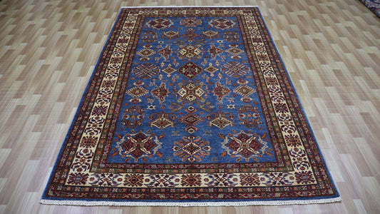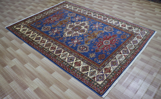 6x8 ft Oriental Area Rug, Blue Afghan Hand Knotted Wool Traditional Rectangle Carpet, Rugs For Living Room, Bedroom Rug, Dining Table Rug