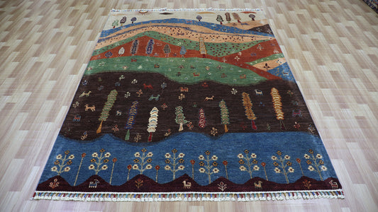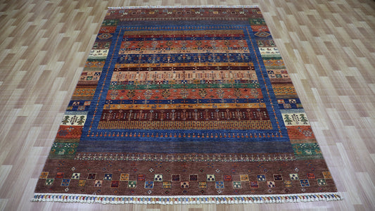 6x8 ft Gabbeh Area Rug, Multicolor Afghan Hand Knotted Wool Traditional Rectangle Carpet, Rugs For Living Room, Bedroom Rug, Dining TableRug