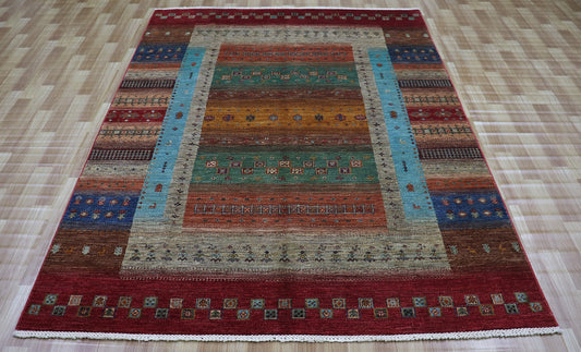 6x8 ft Gabbeh Area Rug, Colorful Afghan Hand Knotted Wool Traditional Rectangle Carpet, Rugs For Living Room, Bedroom Rug, Dining Table Rug