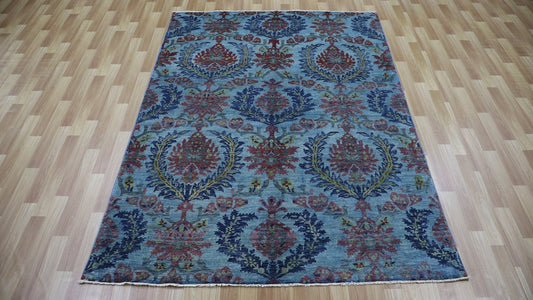 5x8 Ft Blue Floral Area Rug, Afghan Hand Knotted Wool Traditional Rectangle Area Carpet, Rugs For Living Room, Bedroom Rug, Dining Table Rug