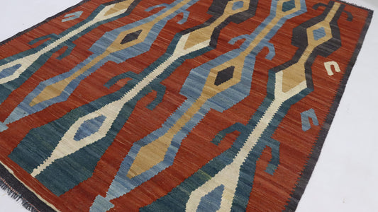 6x8 Ft Red Turkish Kilim Hand Knotted Aztec Area Rug