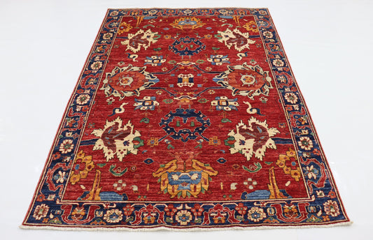5x8 Ft Red Aryana Afghan Hand Knotted Tribal Area Rug