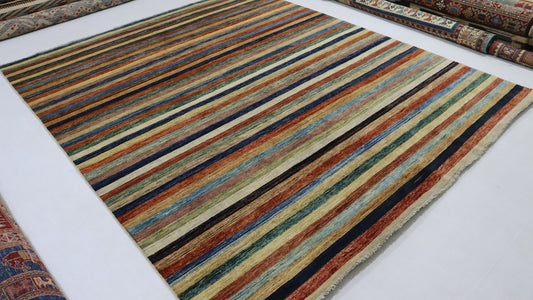 8x10 Ft Multicolor Striped Gabbeh Hand Knotted Afghan Area Rug