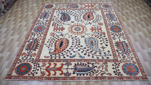 8x10 Ft Floral Plush Wool Area Rug, Afghan Hand Knotted Traditional Rectangle Carpet, Rugs For Living Room, Bedroom Rug, Dining Table Rug