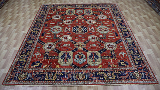 8x10 Ft Oriental Area Rug, Red Afghan Hand Knotted Wool Traditional Rectangle Carpet, Rugs For Living Room, Bedroom Rug, Dining Table Rug