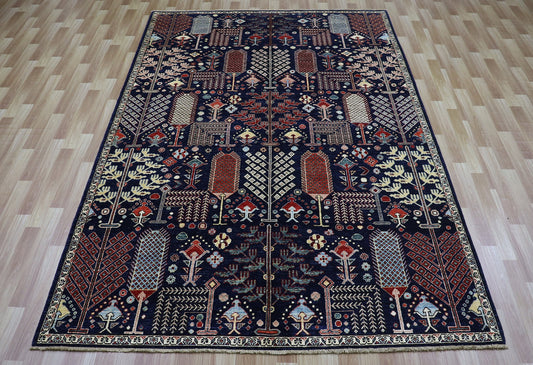 6x10 Ft Tree Print Area Rug, Navy Blue Afghan Hand Knotted Wool Traditional Rectangle Carpet, Living Room Rug, Bedroom Rug, Dining Table Rug