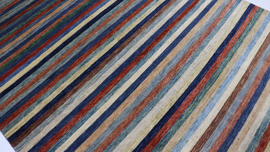 8x10 Ft Multicolor Striped Gabbeh Hand Knotted Afghan Area Rug