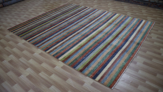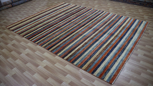 8x10 ft Gabbeh Striped Area Rug, Afghan Hand Knotted Wool Traditional Rectangle Carpet, Rugs For Living Room, Bedroom Rug, Dining Table Rug