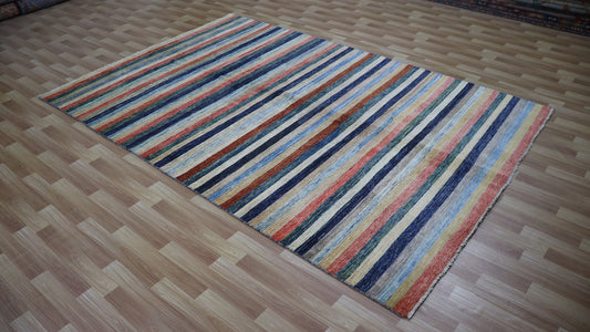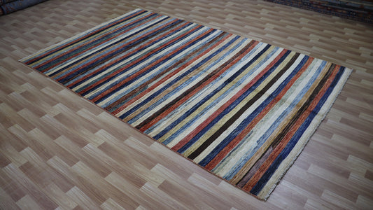 6x10 ft Striped Gabbeh Area Rug, Afghan Hand Knotted Wool Traditional Rectangle Carpet, Rugs For Living Room, Bedroom Rug, Dining Table Rug