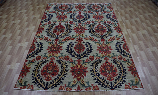 6x10 Ft Floral Area Rug, Afghan Hand Knotted Wool Traditional Rectangle Carpet, Living Room Rug, Bedroom Rug, Dining Table Rug, Office Rug
