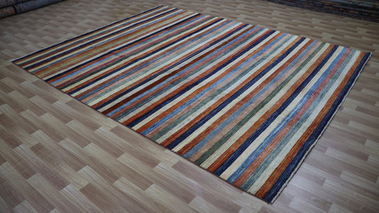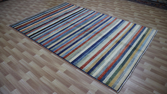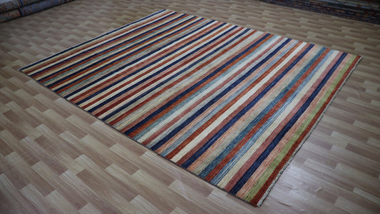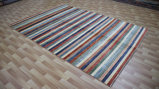 6x10 ft Striped Simple Area Rug, Afghan Hand Knotted Wool Transitional Rectangle Carpet, Rugs For Living Room, Bedroom Rug, Dining Table Rug