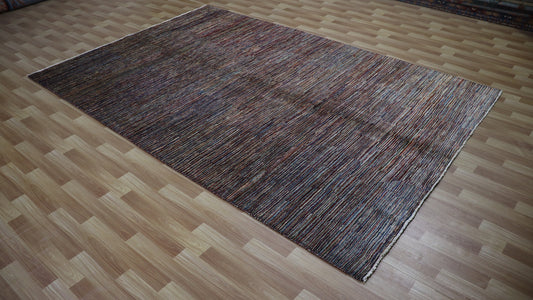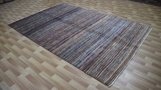 6x10 ft Striped Gabbeh Area Rug, Afghan Hand Knotted Wool Transitional Rectangle Carpet, Rugs For Living Room, Bedroom Rug, Dining Table Rug
