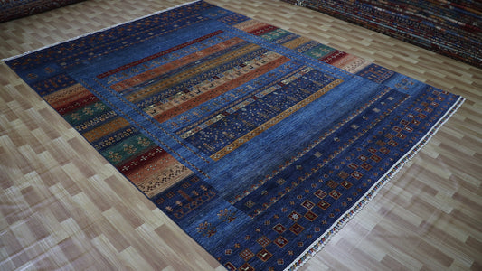 9x12 ft Gabbeh Area Rug, Blue Persian Tribal Hand Knotted Wool Traditional Carpet, Rugs For Living Room, Bedroom Rug, Dining Table Rug