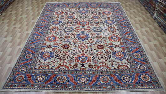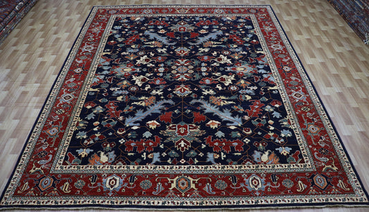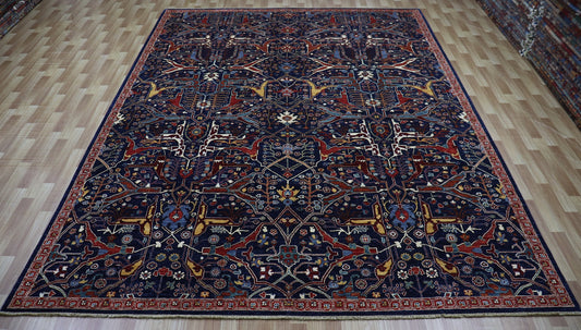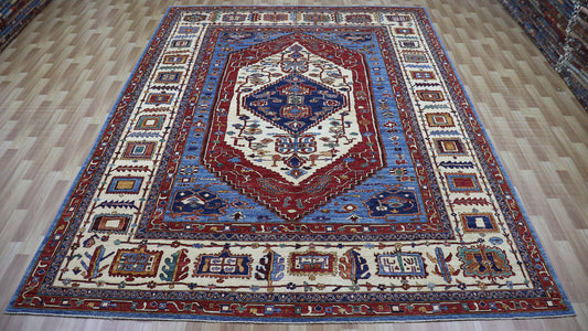 9x12 Ft Serapi Area Rug, Blue Afghan Hand Knotted Wool Traditional Carpet, Rugs For Living Room, Bedroom Rug, Dining Table Rug, Floral Rug