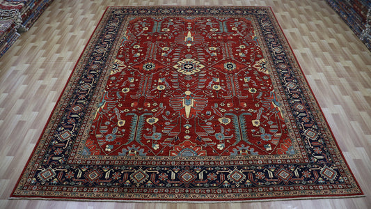 9x12 Ft Persian Serapi Large Area Rug, Red Hand Knotted Wool Traditional Rectangle Carpet, Living Room Rug, Bedroom Rug, Dining Table Rug
