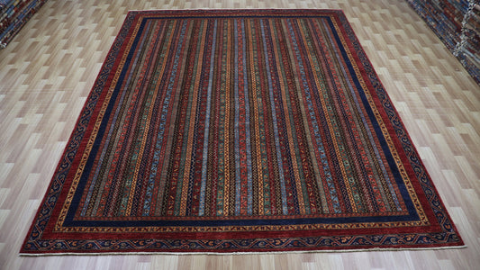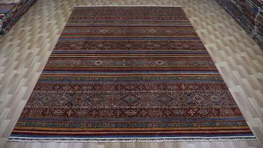 9x12 Ft Red Oriental Large Area Rug, Afghan Hand Knotted Wool Striped Rectangle Carpet, Rugs For Living Room, Bedroom Rug, Dining Table Rug