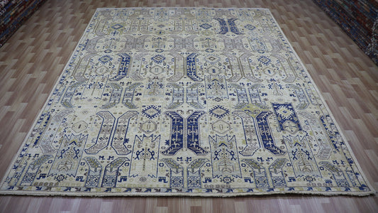 9x12 Ft Oriental Large Area Rug, Beige Afghan Hand Knotted Wool Traditional Rectangle Carpet, Living Room Rug, Bedroom Rug, Dining Table Rug