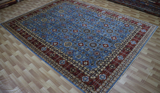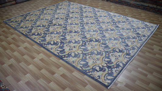 9x12 Ft Blue Floral Large Area Rug, Afghan Hand Knotted Wool Traditional Rectangle Carpet, Living Room Rug, Bedroom Rug, Dining Table Rug