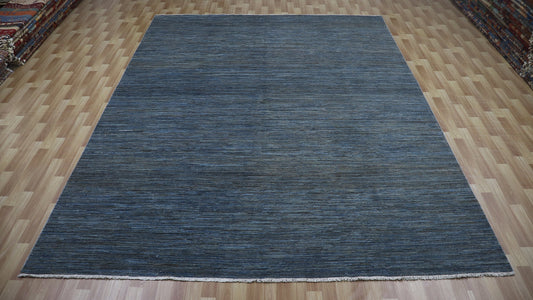 9x12 Ft Blue Solid Large Area Rug, Afghan Hand Knotted Wool Transitional Rectangle Carpet, Living Room Rug, Bedroom Rug, Dining Table Rug