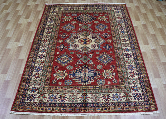 5x7 Ft Kazak Area Rug, Red Afghan Hand Knotted Wool Traditional Carpet, Rugs For Living Room, Bedroom Rug, Kitchen Rug, Oriental Boho Rug