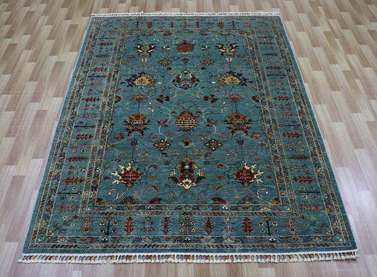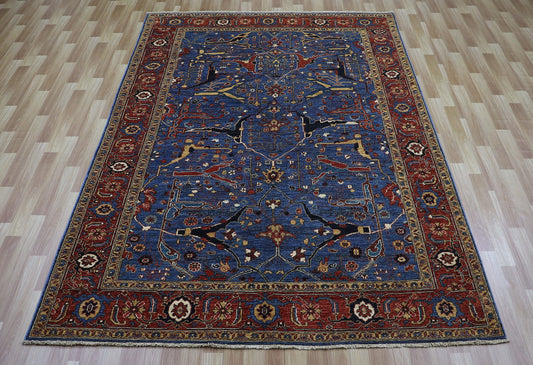 7x10 Ft Blue/Red Pazyryk Afghan Hand Knotted Tribal Area Rug