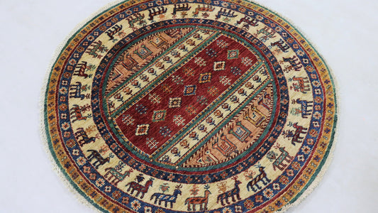 4x4 Ft Round Gabbeh Afghan Hand Knotted Tribal Area Rug