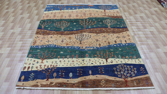 6x8 ft Gabbeh Area Rug, Beige Afghan Hand Knotted Wool Traditional Carpet, Rugs For Living Room, Bedroom Rug, Dining Table Rug, Tribal Rug