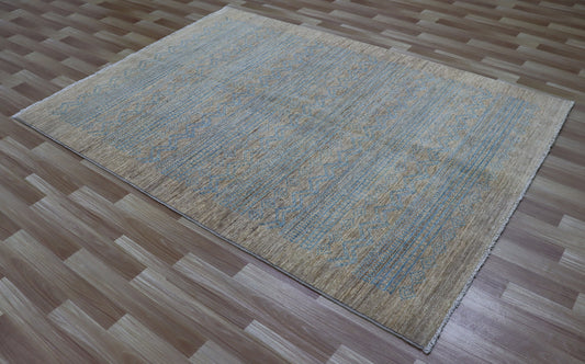 5x7 ft Tribal Area Rug, Blue Beige Afghan Hand Knotted Wool Traditional Rectangle Carpet, Rugs For Living Room, Bedroom Rug,Dining Table Rug