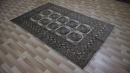 5x7 Ft Beige Bokhara Area Rug, Afghan Hand Knotted Plush Wool Rectangle Carpet, Oriental Rug For Living Room, Bedroom Rug, Dining Table Rug