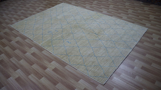 6x9 ft Beige Modern Gabbeh Area Rug, Afghan Hand Knotted Wool Transitional Rectangle Carpet, Living Room Rug, Bedroom Rug, Dining Table Rug