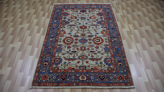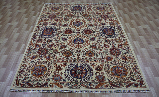 5x8 ft Bidjar Area Rug, Ivory Afghan Hand Knotted Wool Traditional Rectangle Carpet, Rugs For Living Room, Bedroom Rug, Dining Table Rug