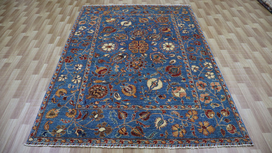 6x8 ft Bidjar Area Rug, Blue Afghan Hand Knotted Wool Traditional Rectangle Carpet, Rugs For Living Room, Bedroom Rug, Dining Table Rug