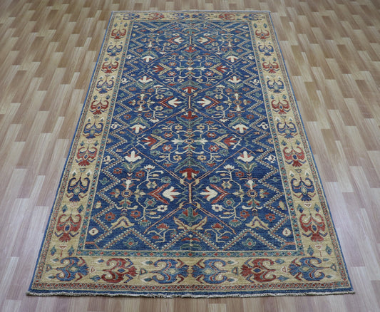 5x7 Ft Kazak Oriental Area Rug, Blue Afghan Hand Knotted Wool Traditional Rectangle Carpet, Living Room Rug, Bedroom Rug, Dining Table Rug