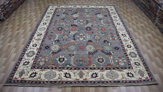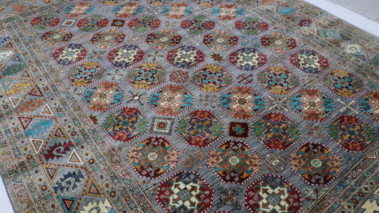 9x12 ft Oriental Area Rug, Gray Afghan Hand Knotted Wool Traditional Rectangle Carpet, Rugs For Living Room, Bedroom Rug, Dining Table Rug