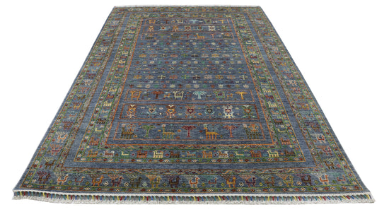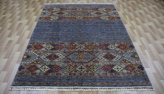 7x10 Ft Gray Khorjin Afghan Hand Knotted Tribal Area Rug