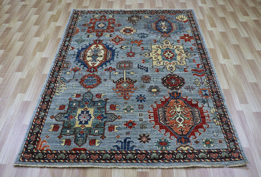 6x8 ft Tribal Area Rug, Gray Afghan Hand Knotted Wool Traditional Rectangle Carpet, Rugs For Living Room, Bedroom Rug, Dining Table Rug
