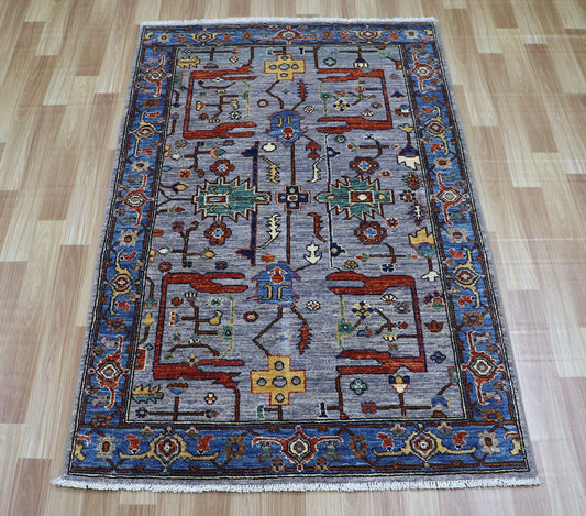 3x5 Ft Bidjar Small Area Rug, Gray Afghan Hand Knotted Wool Traditional Carpet, Rugs For Living Room, Bedroom Rug, Office Rug, Entryway Rug