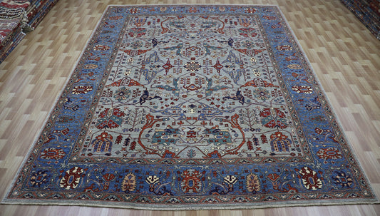 9x12 Ft Gray Sickle Leaf Tribal Large Area Rug, Afghan Hand Knotted Wool Traditional Rectangle Carpet, Rugs For Living Room, Bedroom Rug