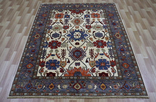 8x10 Ft Tribal Garden Area Rug, Afghan Hand Knotted Wool Traditional Rectangle Carpet, Rugs For Living Room, Bedroom Rug, Dining Table Rug