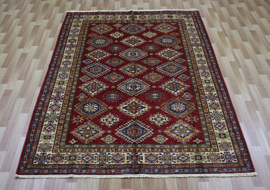 6x8 ft Oriental Area Rug, Red Afghan Hand Knotted Wool Traditional Rectangle Carpet, Rugs For Living Room, Bedroom Rug, Dining Table Rug