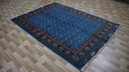 6x8 Ft Blue Bokhara Plush Wool Area Rug, Afghan Hand Knotted Oriental Rectangle Carpet, Rugs For Living Room, Bedroom Rug, Dining Table Rug