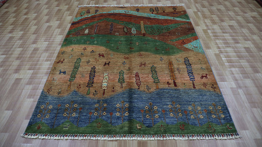 6x8 ft Gabbeh Area Rug, Colorful Afghan Hand Knotted Wool Traditional Rectangle Carpet, Rugs For Living Room, Bedroom Rug, Dining Table Rug