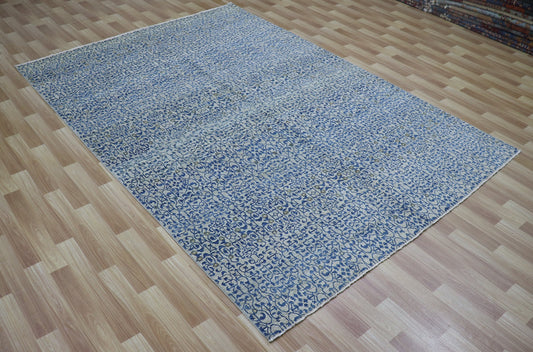 6x9 ft Transitional Gabbeh Area Rug, Blue Afghan Hand Knotted Wool Abstract Rectangle Carpet, Living Room Rug, Bedroom Rug, Dining Table Rug