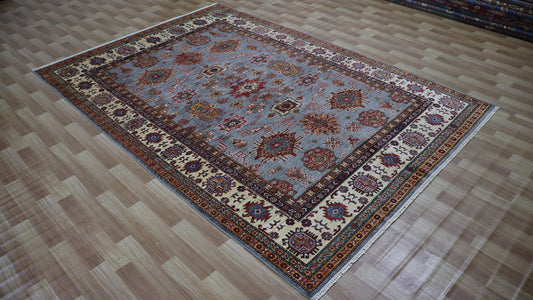 10x14 Ft Blue Kazak Oriental Large Area Rug, Afghan Hand Knotted Wool Rectangle Carpet, Rugs For Living Room, Bedroom Rug, Dining Table Rug